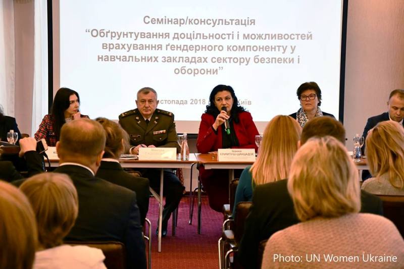 У Києві проходить семінар-консультація «Обґрунтування доцільності і можливостей врахування гендерного компоненту в навчальних закладах сектору безпеки і оборони». Серед його учасників Віце-прем’єр Міністр України з питань європейської та євроатлантичної інтеграції України Іванна Климпуш-Цинцадзе, Урядова Уповноважена з питань гендерної політики Катерина Левченко, заступник Міністра внутрішніх справ Тетяна Ковальчук, заступник Міністра освіти Роман Греба, національна консультантка ООН Жінки Олена Суслова, представники навчальних закладів сектору безпеки і оборони. Житомирський військовий інститут імені С. П. Корольова представила радниця з гендерних питань Оксана Критенко. На семінарі обговорюються питання щодо оцінки та аналізу навчальних програм відповідно до принципів рівних прав і можливостей для жінок і чоловіків, часові рамки їх здійснення, ключові очікувані результати тощо.